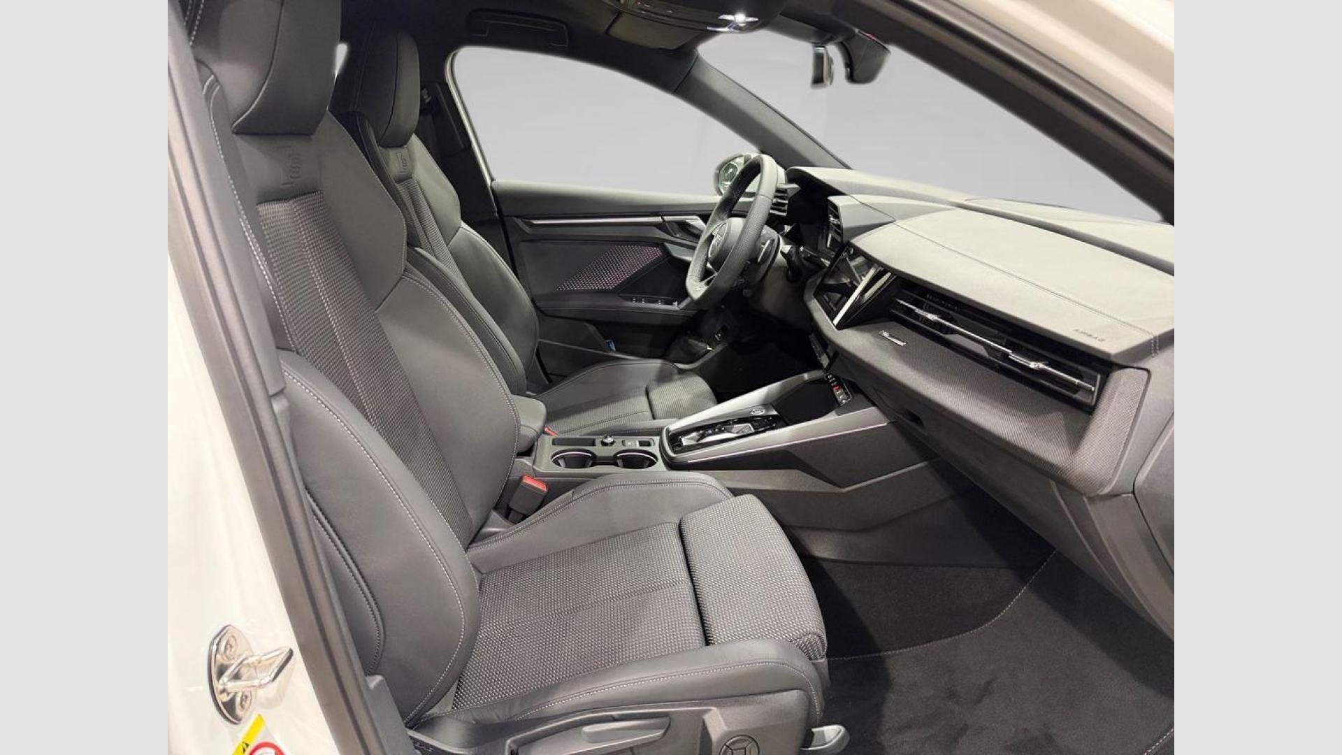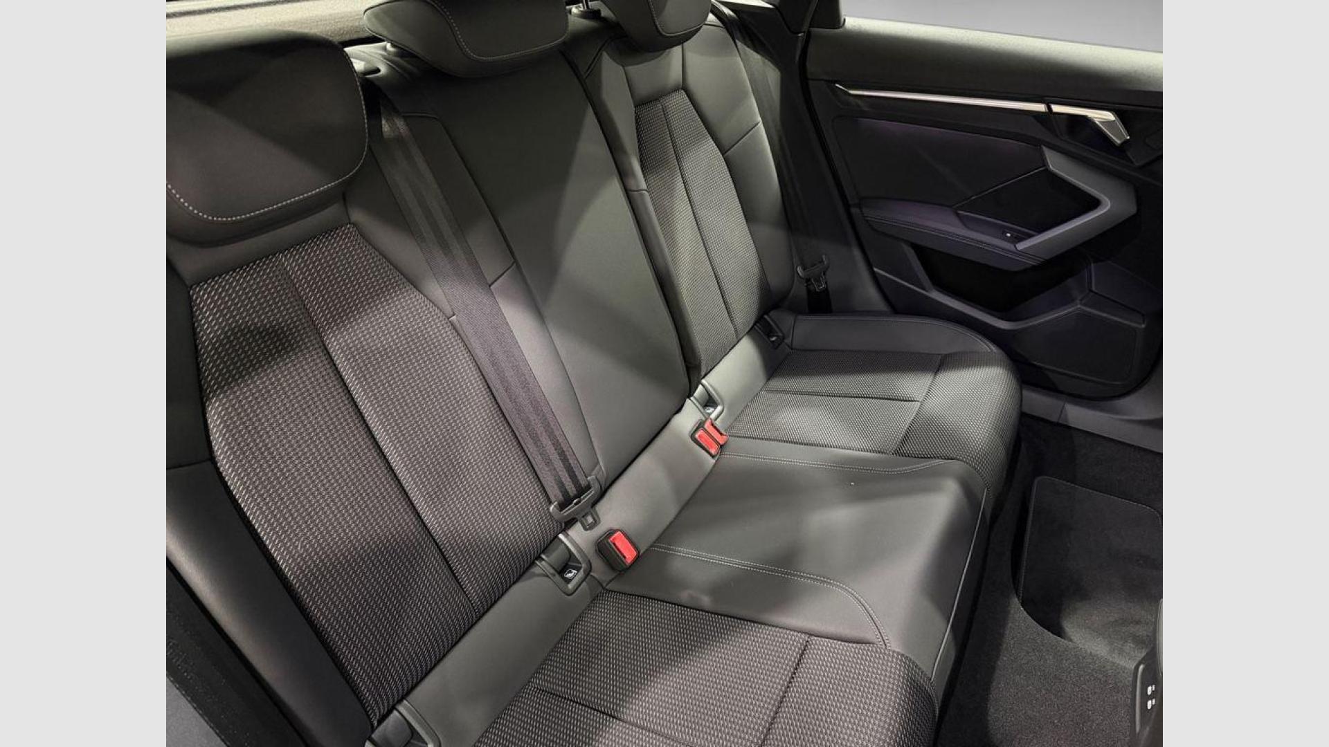 - Asientos de tela (material principal) y de cuero sintético (material secundario)