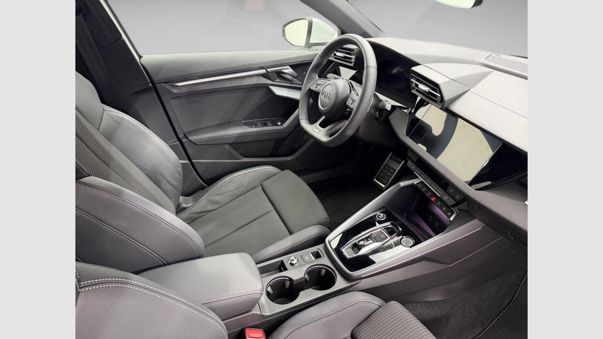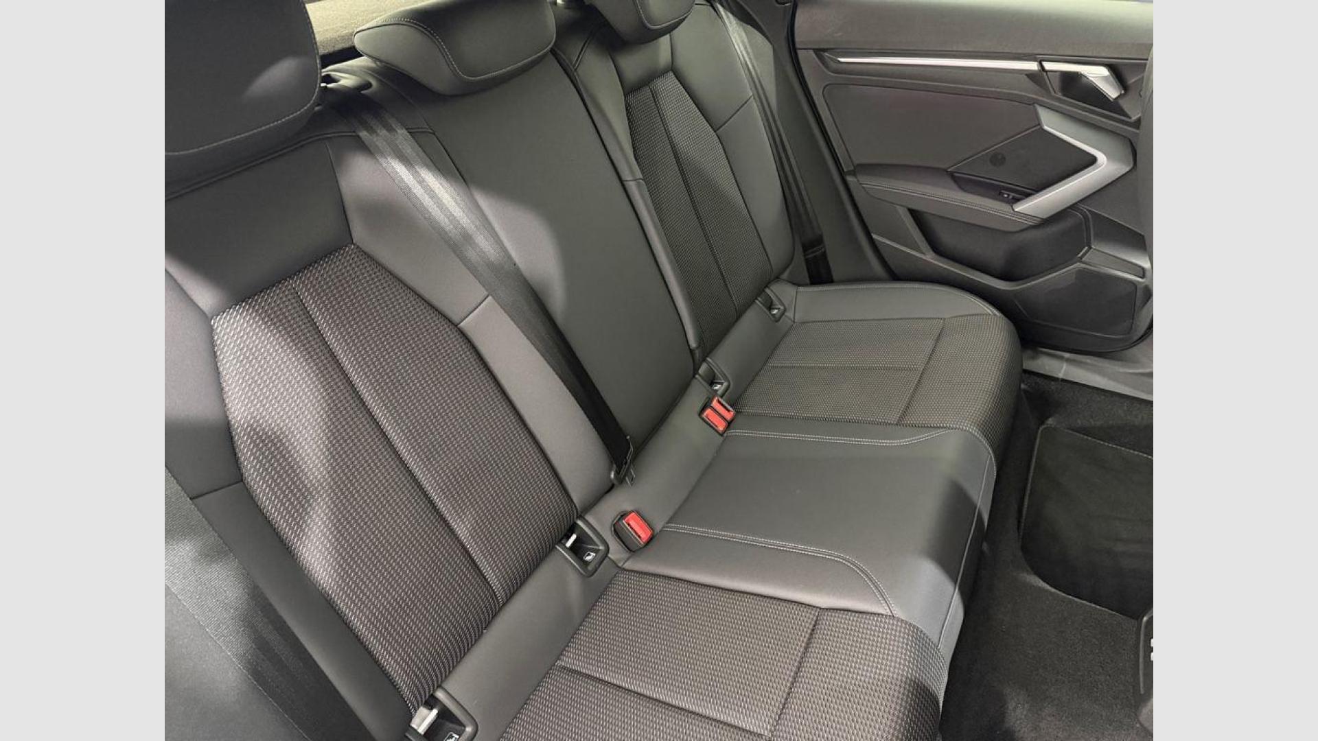 - Asientos de tela (material principal) y de cuero sintético (material secundario)