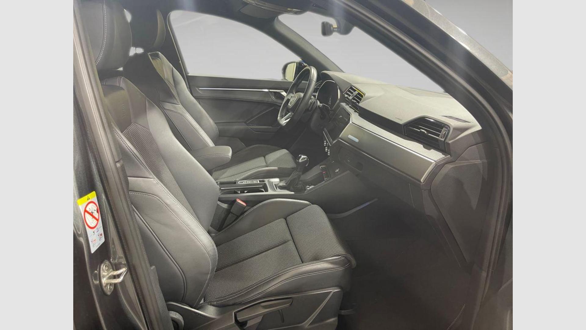 - Asientos de tela (material principal) y de cuero sintético (material secundario)
